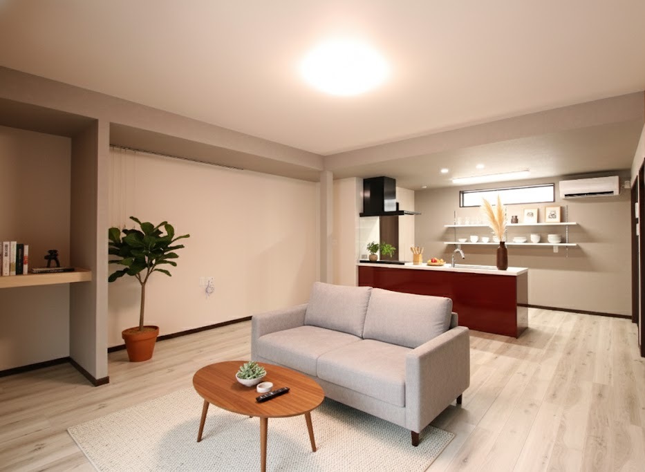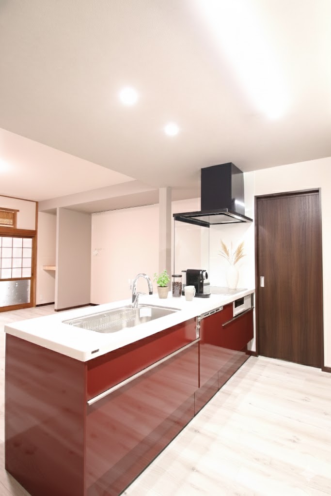和室二部屋を一体化して開放的なLDKへと改修し、あわせて水廻りの配置を見直すことで、家事動線を大幅に改善しました。